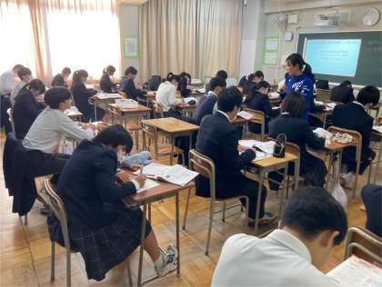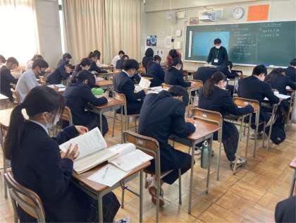 11月14日 火曜日 授業風景3 公開日 2023/11/14 更新日 2023/11/14 お知らせ 9年生の授業風景です。 (上)数学:相似形の演習問題 (中)保体:医療機関の利用と医薬品の使用 (下)前期課程の運動場には「はっさく」が実り、色づき始めています。 いいね(0)