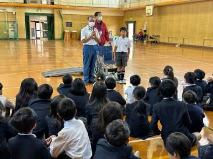 説明の中で、車いすの部品の名前を聞かれる場面がいくつかありましたが、事前に学習していた子どもたちは自信たっぷりに答えることができていました。