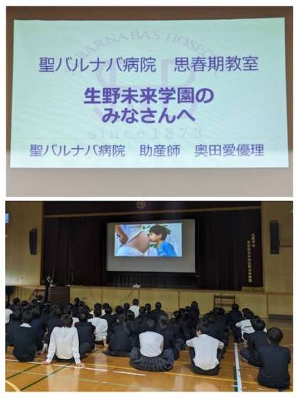 11月17日(金)、8年生は性教育「妊娠と出産」を学ぶために、聖バルナバ病院の助産師さんが出前授業をしてくださいました。