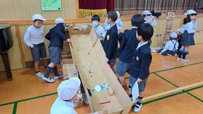 おもちゃも遊びのルールも、遊びに必要なものも全て2年生が自分たちで考えて作りました。遊んでいた1年生はとても楽しそうで、しっかりとルールを守り仲良く遊ぶことができました。