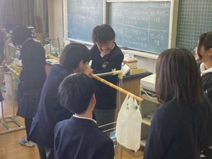 授業探訪(6年 理科) 公開日 2024/01/19 更新日 2024/01/19 お知らせ ? 6年生の理科の授業は、義務教育学校の強みを生かし、後期課程の教員が授業を担当しています。 この日は「てこをどのように使えば、重いものを小さな力で持ち上げることができるか?」について、予想を立て、力点の位置、作用点の位置を変えることでどのように感じるか実験で確かめていました。 本校では実験を大切にしています。実験を通して、知識を実感して身につけていきたいですね。 いいね(0)