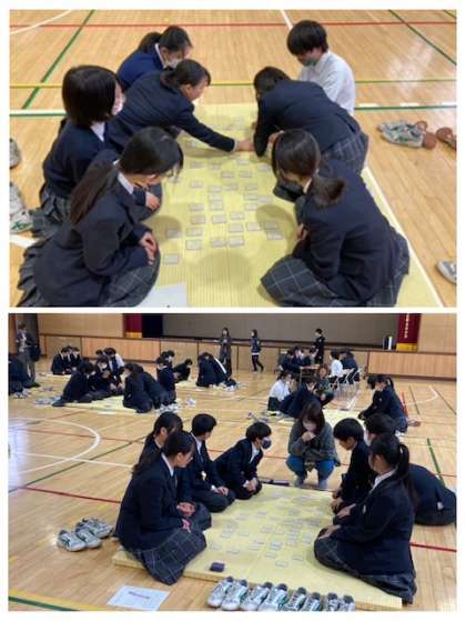 1月26日(金) 7年生百人一首大会 公開日 2024/01/26 更新日 2024/01/26 お知らせ 1月26日(金)7年生の百人一首大会が行われました。各クラスの班対抗で2試合が実施されました。札を読んでくださる先生の声を真剣に聞き、札が取れた時には歓声が上がっていました。とても楽しい行事になりましたね。 さて、優勝クラス、優勝班は?来週の学年集会での発表が楽しみですね! いいね(0)