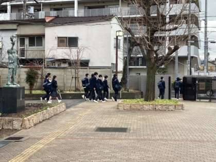 3月5日(火)、公立高校一般選抜の出願に午後、9年生は出発しました。来週の入試に向けて、頑張れ9年生!
