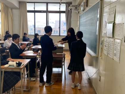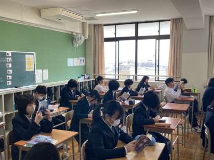 朝の学活風景(7年生) 公開日 2024/04/18 更新日 2024/04/18 お知らせ 4月18日(木) 7年生の朝の学活風景です。7年生では朝の読書を行っています。担任の先生も一緒に読書をしています。学校の図書館でもお昼休みに本を借りることができますので、1年間でたくさんの本に出会い、読み続けていきましょう! 2組では学級役員が決まったので、読書の前に担任の先生から認証状を渡されていました。 後期課程では本日各種委員会もあり、本格的に委員会活動が始まります。頑張りましょう! いいね(0)