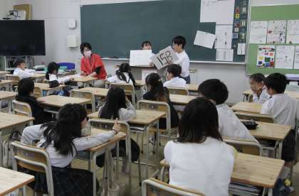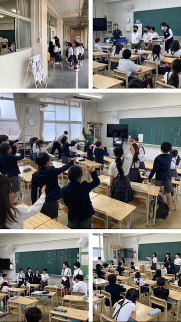 各教室では、リーダー役の5年生二人が教壇に立って下級生らに指示を出し、全員が自己紹介したあと、しりとりなどのゲームを楽しみました。この縦割り班は今後、毎週木曜日朝の「児童集会の時間」を利用して講堂でゲームやクイズなどをして活動します。