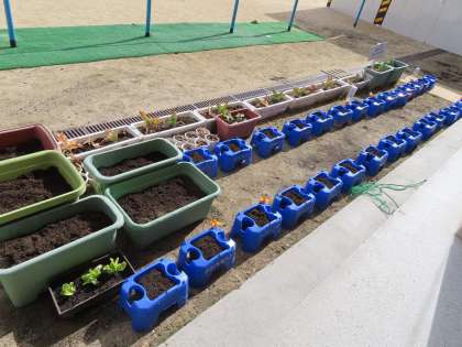 一人一人の植木鉢の底に広がっていた根をとって新しい土を足し、金曜日に届く予定のミニトマトの苗を植える準備をしました。元気な苗が一人一人のところに届くことを願っています。