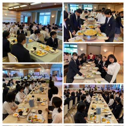 5月11日(土)9年修学旅行3日目の朝食の様子です。しっかり食べて、今日の活動に備えます。