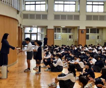 5/13_全校集会(6〜8年) 公開日 2024/05/13 更新日 2024/05/13 お知らせ 5月13日(月)6年〜8年生の全校集会にて、6年生の学級委員の認証式が行われました。今日から後期課程の生徒達と共に委員会活動をしていきます。頑張りましょう。 いいね(0)