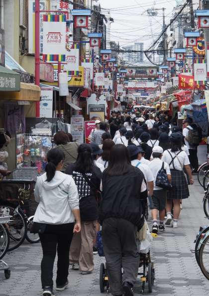 この後、境内に隣接するコリアタウンや、文書に残る日本最初の橋とされる「つるのはし」(鶴橋)の跡、韓国・済州島の石像トルハルバンが設置されている御幸森第2公園などを次々に見てまわりました。
