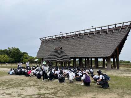弥生文化博物館のあとは、池上曽根遺跡に移動して、お弁当を食べました。お弁当のあとには、敷地内の竪穴住居の中にも入ることができ、最後まで弥生文化を感じることができました。学校への帰路でもマナーを守り、楽しい社会見学になりました。