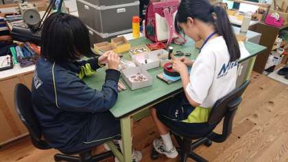 ランドセルの肩紐の一部を製作をしていました。小さな部品1つ1つを丁寧に仕上げて、もくもくと作業できていました。
