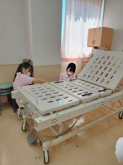 聴診器体験、食事介助、清掃、施設見学、患者さんとのお話など、病院での仕事を1日しっかり頑張りました!