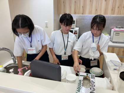 車椅子を押したり、施設での食事を体験したり、入居者の方とお話するなどしていました。将来の話や戦争の話など、普段は聞けないお話がたくさんできたそうです。