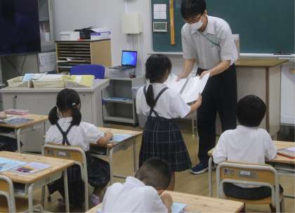 1年生たちは7月18日(木)、終業式のあと各教室に帰り、担任の先生から通知表を受け取りました。