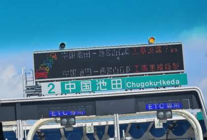 阪神高速を抜け、中国自動車道に入りました。中国自動車道は工事中で渋滞が発生しています。