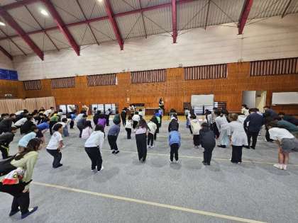 雨のため、集合は体育館です。