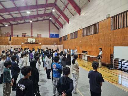朝の体操のあと、簡単に予定の変更についての話がありました。