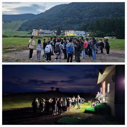高原の真ん中にある休憩所はオートライトになっていてみんなが集まると明かりがつきました。口では強がりを言っている子どもたちですが、少し怖かったらしく、安堵の声が漏れていました。