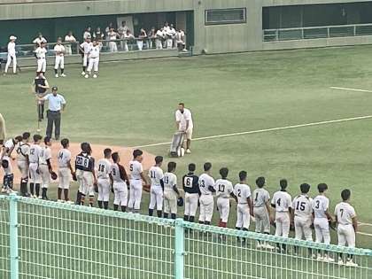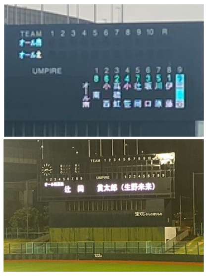 大阪市南北選抜チーム対抗試合(野球) 公開日 2024/08/07 更新日 2024/08/07 お知らせ 8月6日火曜日、野球の大阪市南北選抜チームの対抗試合が行われました。生野未来学園からは9年生の辻岡くんがオール南の選抜メンバーに選出され、5番レフトでスタメンとして出場しました。雷雨の為、試合は5回途中で中止となりましたが、頑張っていました! (背番号13番が辻岡くんです) いいね(0)