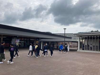 二泊移住の7年生は京丹波PAでトイレ休憩です。少し渋滞して15分遅れですが、みんな元気です。