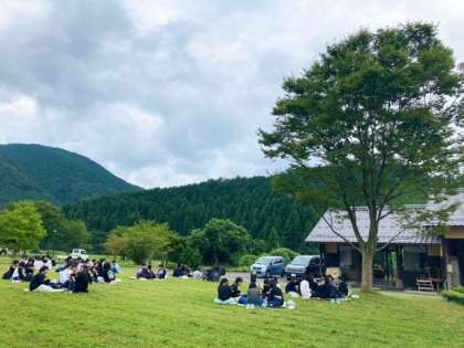 二泊移住の7年生は農楽舎の広場でお弁当を食べました。ご飯は農楽舎で収穫された新米ひとめぼれ。野菜や葡萄も現地で採れたものです。自然の恵みを感じながら美味しくいただきました。