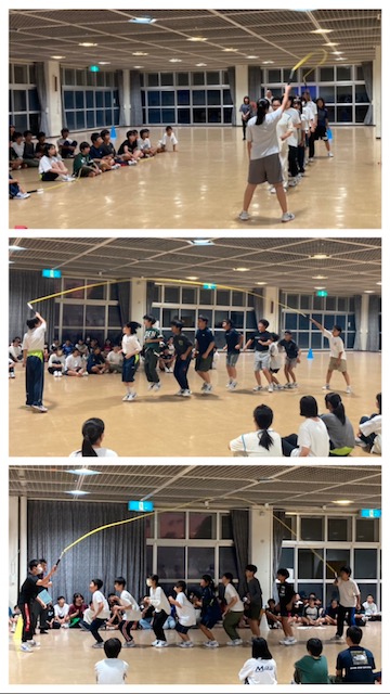 「大縄跳び」は練習の後、本番一発勝負です。「イチ・ニー・サン!」と声を合わせて跳んでいました。