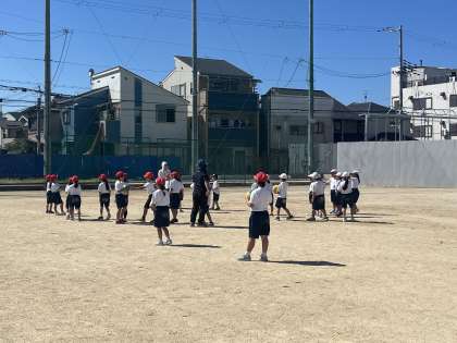 今日の1年生の体育の授業では、かけっこやリレー、ボールを使った学習を行いました。