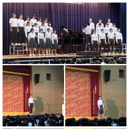 文化発表会 9年生「合唱」 公開日 2024/10/04 更新日 2024/10/04 お知らせ 第3回文化発表会のトリを務めるのは9年生。合唱コンクールで歌った自由曲を各クラスから披露した後、9年生全員で「時の旅人」を合唱しました。9年生一人ひとりの気持ちが1つとなり、体育館いっぱいに美しいハーモニーが響き渡りました。 いいね(0)