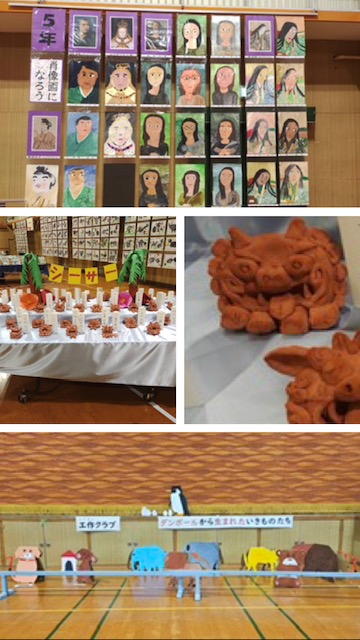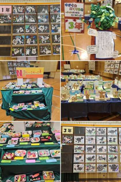 文化発表会 展示の部でも、学年・教科・部活動などが作品を展示しました。1年生から9年生の児童生徒がお互いの作品を鑑賞する中で、工夫を凝らした作品に「凄いなぁ!」と声を上げていました。