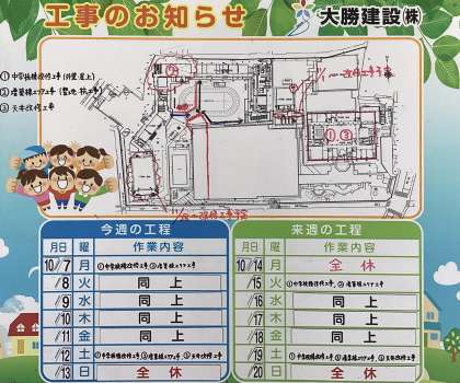 本校で今週(10月7日〜13日)に予定されている工事の内容は「工事のお知らせ」=写真=のとおりです。