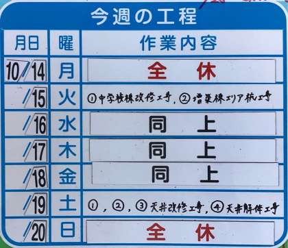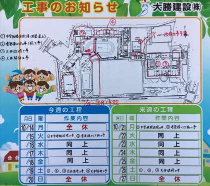 本校で今週(10月14日〜20日)に予定されている工事の内容は「工事のお知らせ」=写真=のとおりです。