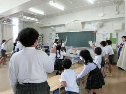 1年生と5年生の交流給食 公開日 2024/10/28 更新日 2024/10/28 お知らせ 1年生と5年生の交流給食がありました。1年生は5年生に少し緊張している様子も見られましたが、5年生がやさしく声をかけたりお話をしたりして、楽しく一緒に給食を食べることができました。 いいね(0)