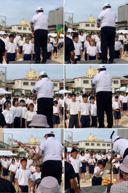 体育大会の閉会式ではたくさんの賞状が渡されました。