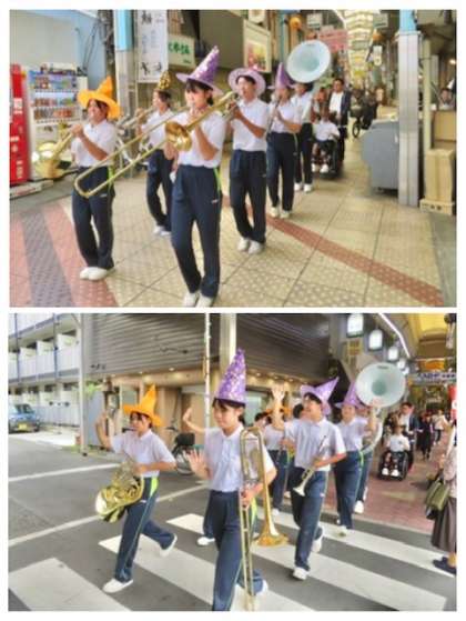 10月26日(土)、吹奏楽部は生野本通り商店街のパレードおよび「まちかどコンサート」に出演しました。