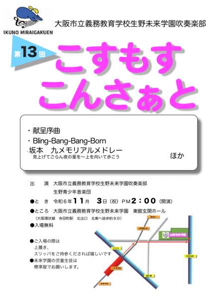 11/3(祝)の第13回こすもすこんさぁとの宣伝もしてチラシ配りも行いました。9年生との演奏は「こすもすこんさぁと」を残すのみとなります。来週の「こすもすこんさぁと」に是非お越しください。