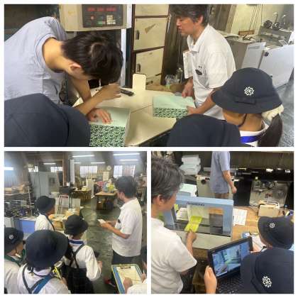 4年生が10月24日(木)、前日に引き続きキャリア教育IKUNO未来科の活動で校区内の工場見学を行い、金田製本所、三国製鏡、小松染物店、阿川ランドセル、安東印刷紙器、シノダの6社にうかがいました。