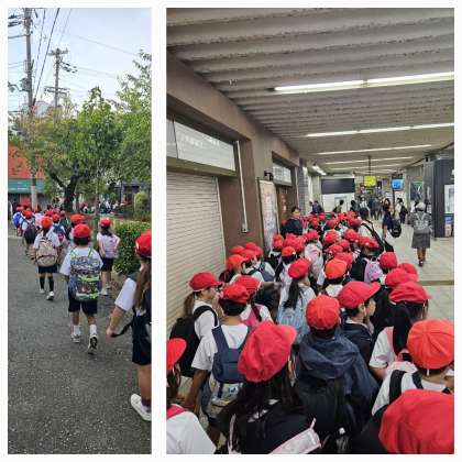今日は1年生の遠足です。環状線に乗って、大阪城公園に向かいます。