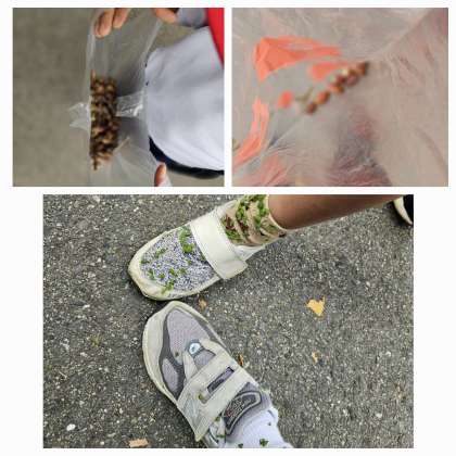 ドングリ、たくさん拾えました。 足には、ひっつき虫が一杯です。