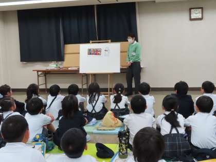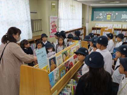 11月1日(金)、社会見学で生野図書館に行ってきました。生活科の「つながる ひろがる わたしの生活」の学習で、まちのすてきの中の「図書館のワンダフルを見つける」ねらいをもって見学に行きました。書架の近くに置いてあるベンチを見て「なんでここに?」という疑問をもったり、生野区らしい韓国・朝鮮の本のコーナーやハングルの本をめずらしそうに見ていたりする様子が見られました。