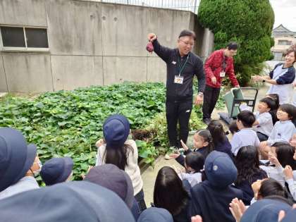 11月7日(木)、2年生では、教室前の2つのプランターで育てていたサツマイモの収穫をしました。想像以上に大きく育ってくれていて、サツマイモの姿が見えるや否や「うわー」と歓声をあげたり、「あった、あった」と指さしたり、「すごーい」と大喜びしながら拍手したりする子どもたちの様子でした。2年生の先生たちも「おー!!」と笑顔で、驚きの声が聞かれました。