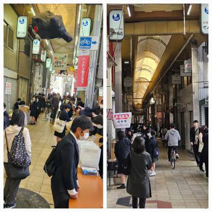 本日、生野本通中央商店街におきまして、生野未来学園の7年生と大阪ビジネスフロンティア高校による、いくの未来お店バトルが開催されます。