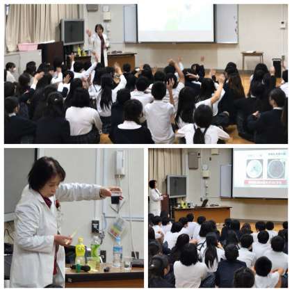 若者を中心に大麻の利用や市販薬の過剰摂取などが増えていることから、薬物乱用についても詳しく勉強。大型モニターで健康な人のきれいな脳の写真と薬物乱用者(シンナー)の黒く変色した脳の写真を見て薬物乱用の怖さを実感していました。