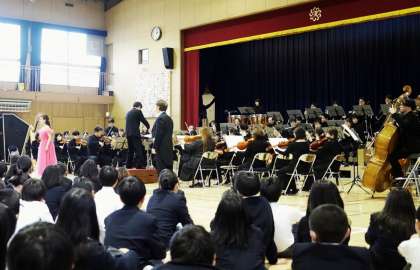 6年生〜9年生がオーケストラの演奏を鑑賞、合唱で共演