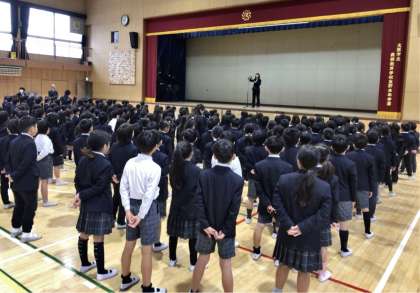 生活指導の先生からは「健康的な生活をすること、自分の安全は自分で守る、人に迷惑をかけない、冬休み中はこの三つのことに気をつけて行動しましょう」とのお話がありました。最後に校歌を元気に斉唱して式を終えました。