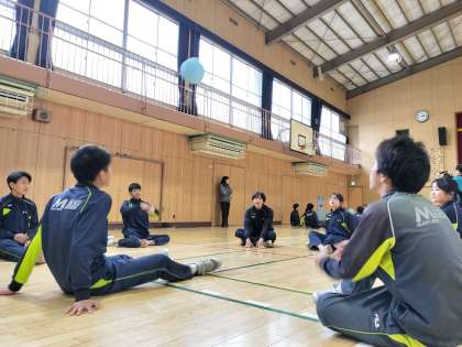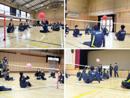 座ったままの移動やパス、レシーブは想像以上に難しく、円陣パスや風船での練習では動けない生徒も多く見られました。