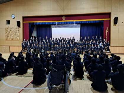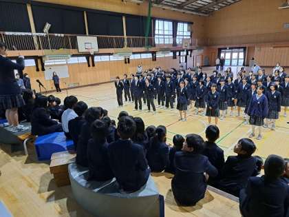 最後に8年生から3年生に合唱コンクールで歌う歌を披露しました。その姿に3年生も聞き入っていました。