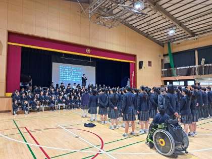 福祉の学習ということもあり、様々な人たちが社会で生活していることや、その人たちを支えている人などについて、来年度進路を考えていく8年生は真剣に見ていました。
