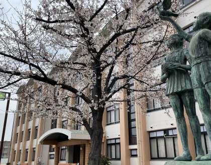 生野未来学園では、桜の花が咲き始め、チューリップや菜の花もきれいに咲いています。
