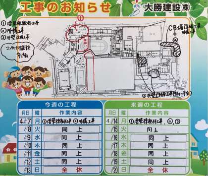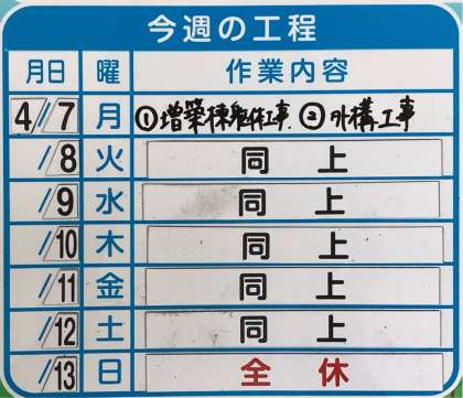 今週(4月7日〜4月13日)の工事予定 公開日 2025/04/07 更新日 2025/04/07 お知らせ 本校における今週(4月7日〜4月13日)の工事予定は「工事のお知らせ」=写真=のとおりです。 いいね(0)
