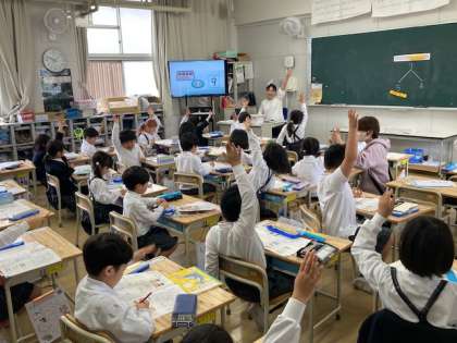 先生の話をしっかり聞いて、一生懸命学習を進めています。